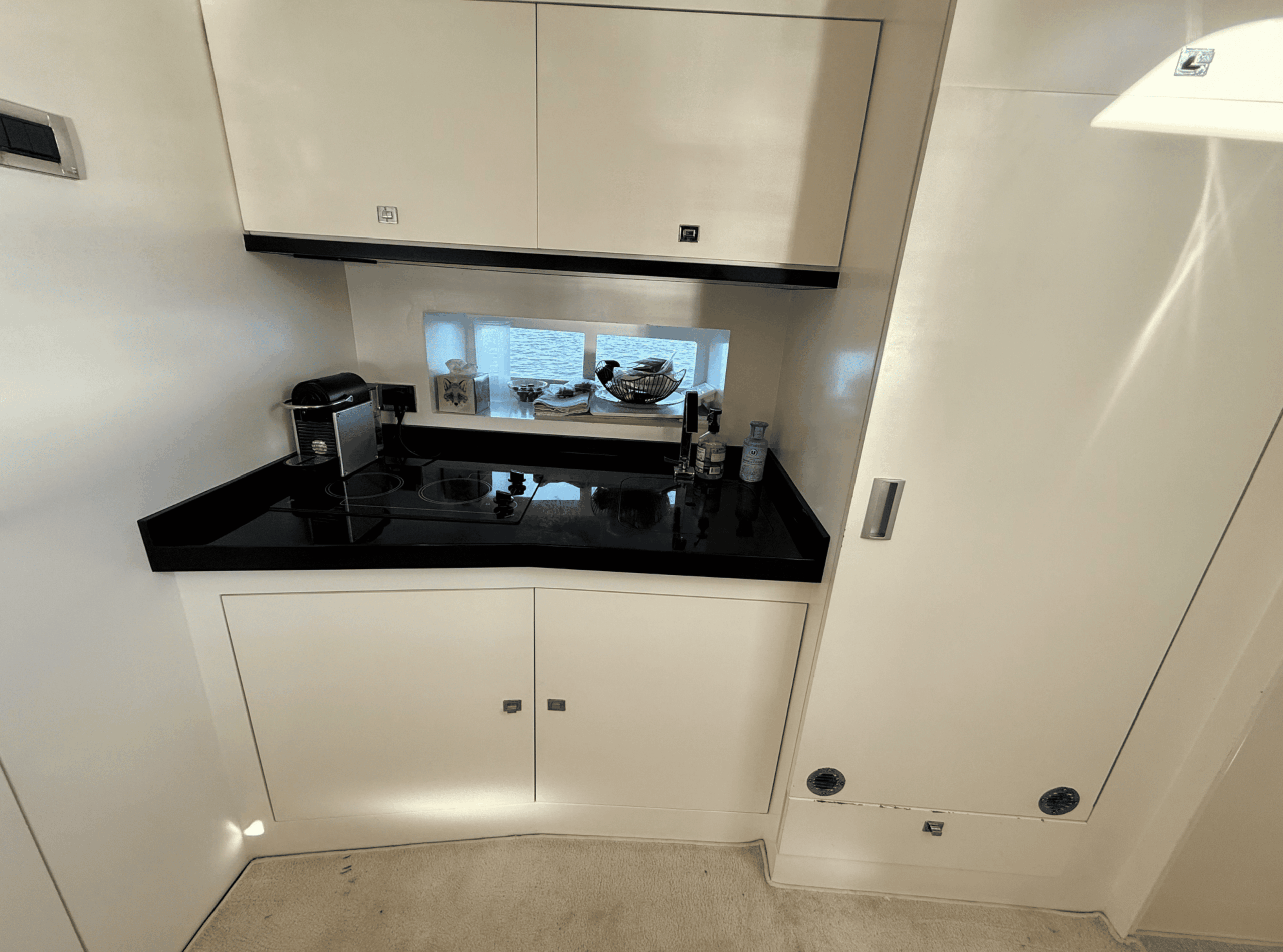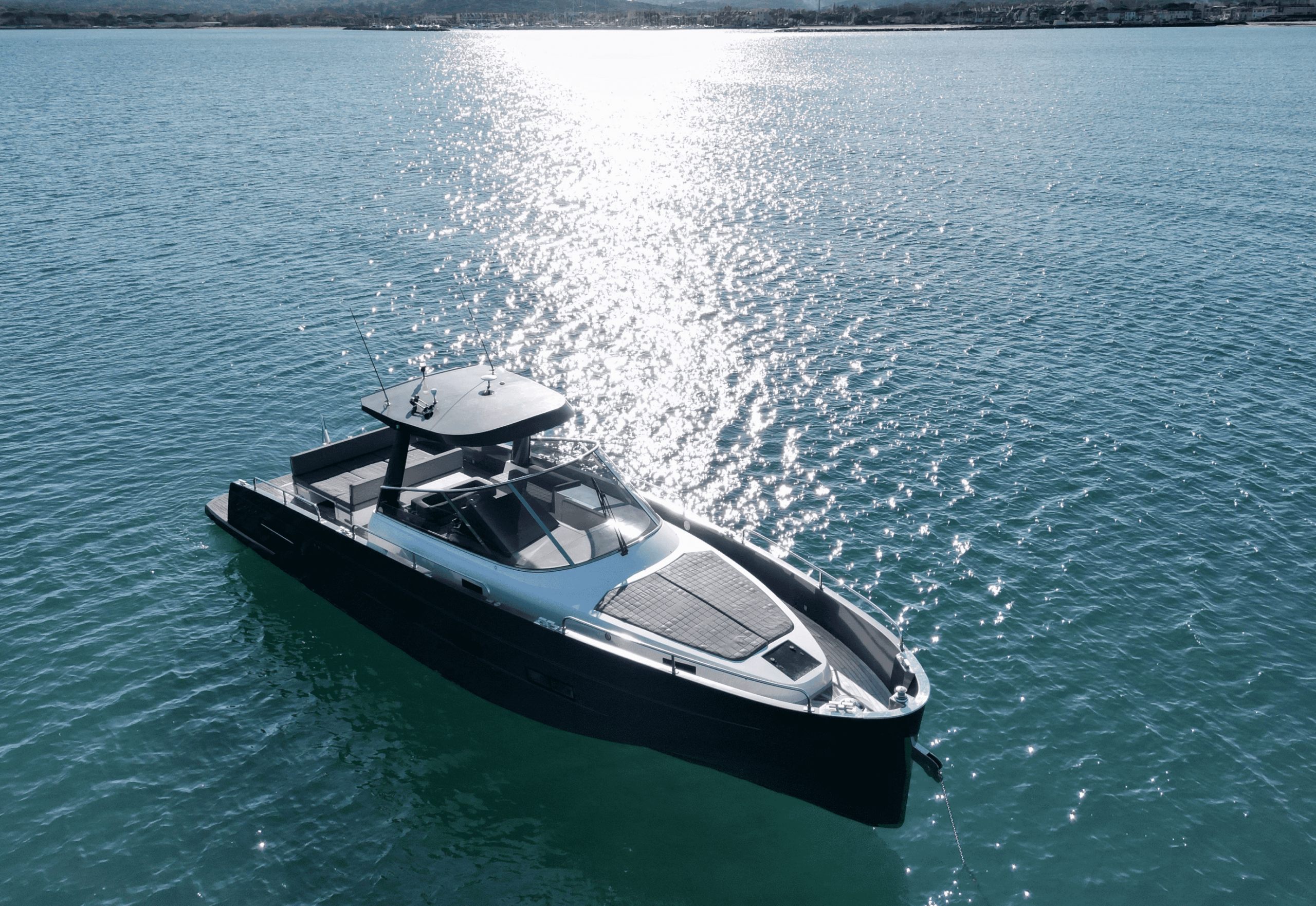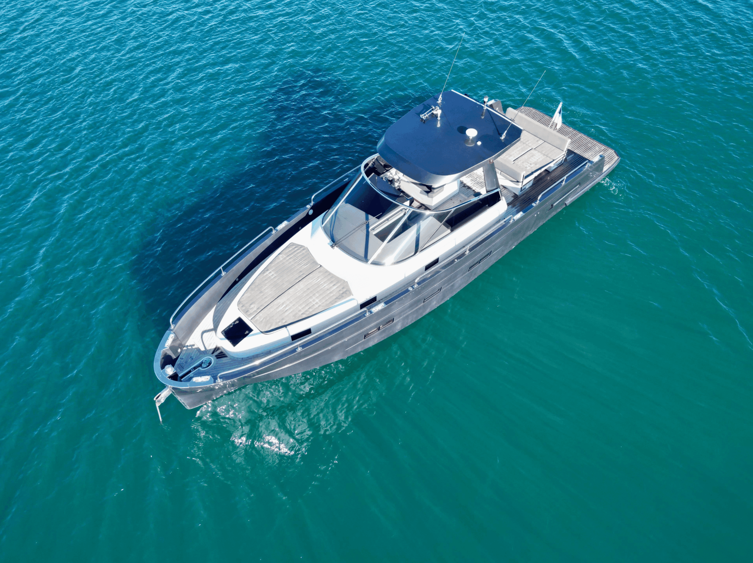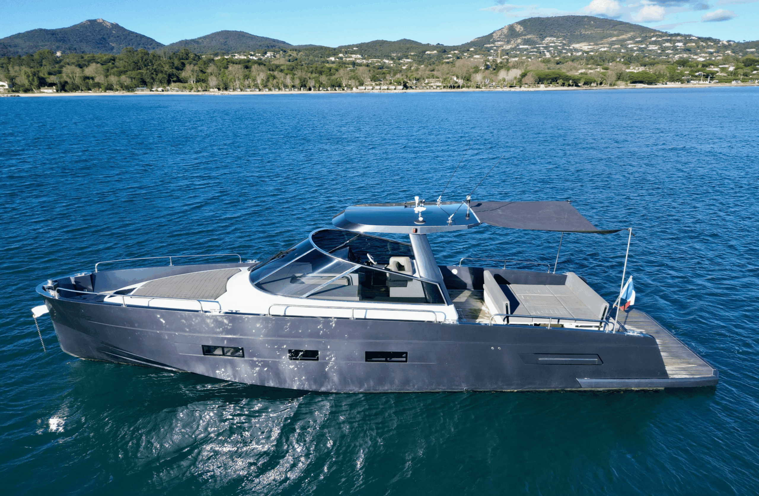 Avec sa coque grise moderne et son pont en teck, “Dhan” combine esthétique et fonctionnalité. Propulsé par des moteurs Volvo Penta D6-435 IPS600, il garantit une navigation fluide, une maniabilité exceptionnelle et une consommation optimisée. Sa vitesse de croisière de 26 nœuds et sa vitesse maximale de 33 nœuds permettent de profiter pleinement de la Méditerranée, que ce soit pour des sorties rapides ou de longues croisières côtières.